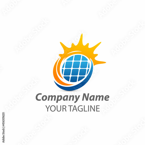 Solar home logo template. Solar panel and sun vector design. Renewable energy illustration