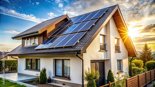 Solar panels on the roof of a modern house , renewable energy, sustainable living