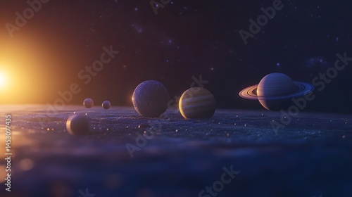 Solar System in Twilight: The solar system bathed in the soft light of twilight, with the planets glowing softly against the darkening sky.