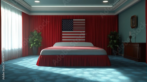 Soldier at Rest in a Quiet Animated Scene with American Flag