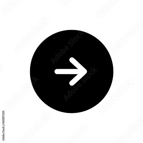 Solid black circle icon with a right-facing arrow, representing forward movement or progression in UI design.