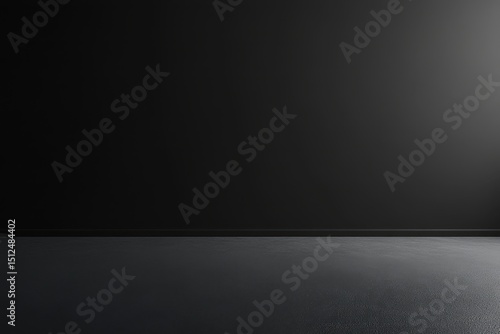 Solid black wall and floor create a minimalistic backdrop enhancing any foreground elements with a stark contrast in a contemporary setting