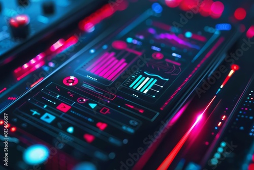 Solid HUD icon of cuttingedge smartphones and gadgets, celebrating innovation in technology with a solid color background, synth wave