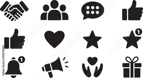 Solid Style Social Media Icons Set on Background for Digital Marketing and Online Communication