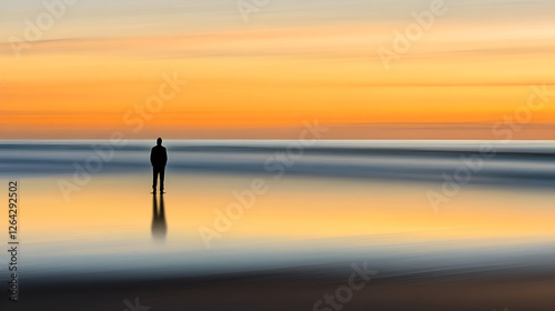 Solitary Reflection: A Person Contemplates Past Memories at Sunset on the Tranquil Beach