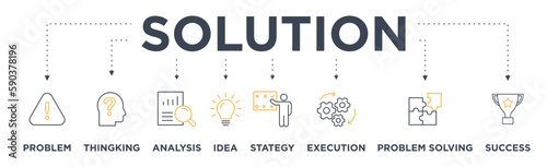Solution banner web icon vector illustration concept with icon of problem, thingking, analysis, idea, execution, problem solving and success