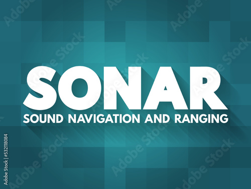 Sonar - technique that uses sound propagation to navigate, measure distances, communicate with or detect objects on or under the surface of the water, acronym text concept background