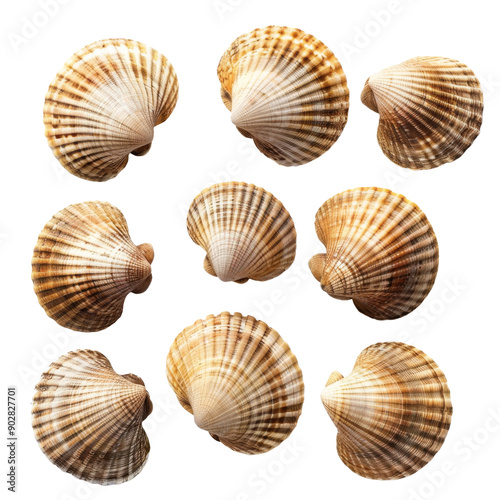 Soodap fresh and raw cockle shells arranged neatly against a white background, showcasing their natural colors and textures for seafood preparation