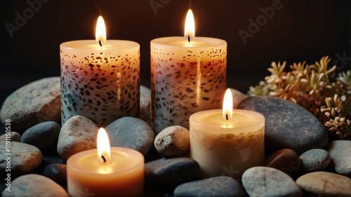 Soothing Ambiance of Flickering Candles Surrounded by Serene Stones, Perfect for Creating a Relaxing Atmosphere for Meditation and Wellness