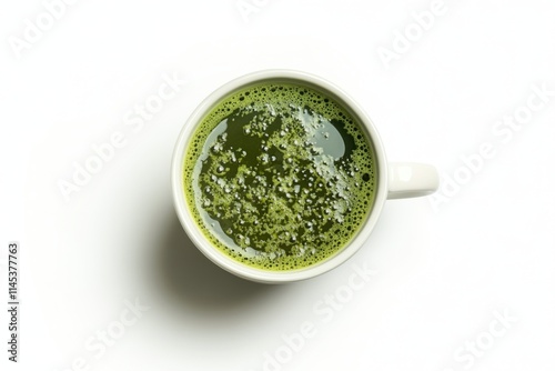 Soothing Green Tea Matcha Latte in a White Mug on Plain Background