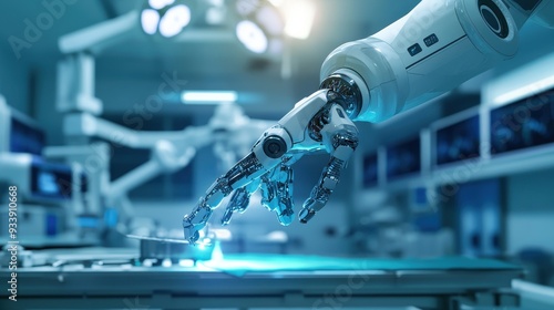 Sophisticated AI-enabled healthcare machine carrying out a surgery in a future-ready medical room in precision and innovation in health