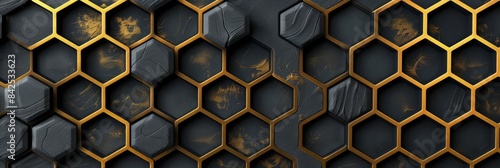 Sophisticated hexagonal pattern in modern dark colors with elegant gold touches, ideal for highend design projects