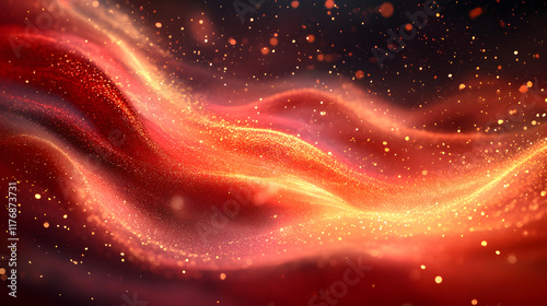 Sophisticated Red and Gold Abstract Visual Composition Highlighting Gentle Curves and Sparkling Details for Upscale Interior Designs.