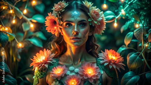 Sound Reactive Flower Woman Shimmering | Interactive Digital Art Concept