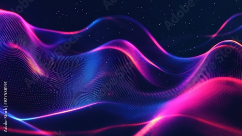 Sound wave background with vibrant, undulating lines and neon accents. Emphasizes rhythm and energy, ideal for audio and tech-related graphic design.