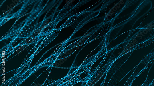 Sound wave. Big data. Data array visual concept. 3D blue glowing abstract background.