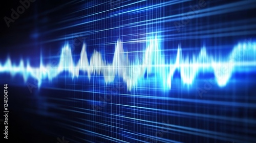 Sound wave visualization displaying dynamic blue patterns in a digital format