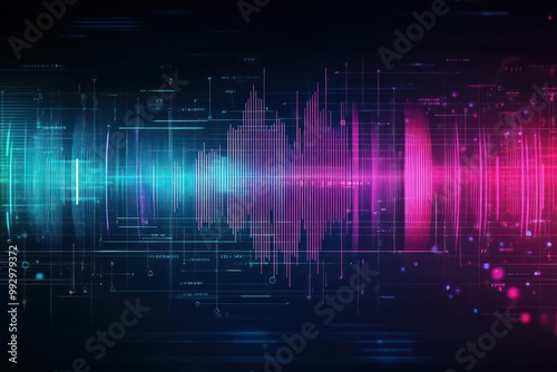 Sound waves visualization, abstract noise patterns, scientific mood, flat design illustration