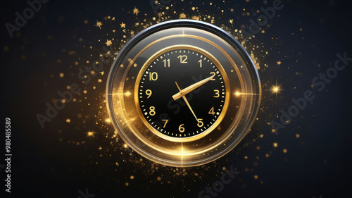 Сountdown timer clock on defocused background with gold bokeh lights.