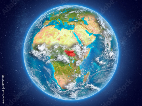 South Sudan on planet Earth in space