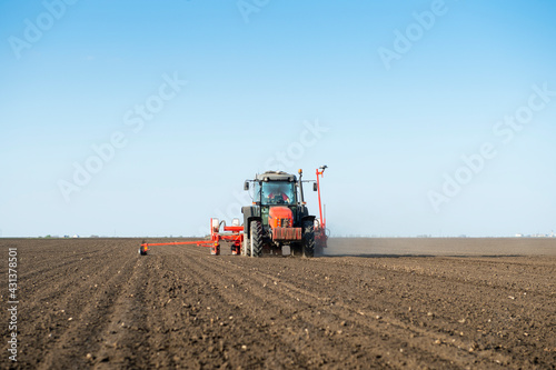 Sowing crops at agricultural fields in spring