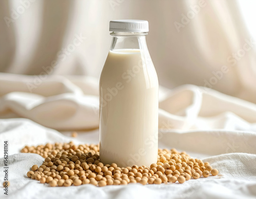 Soy Milk Bottle Mockup Creamy Soybeans & Soft Lighting