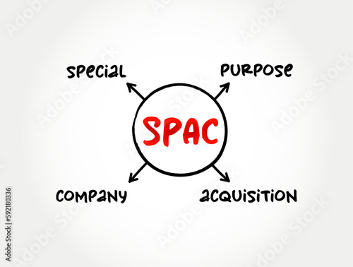 SPAC Special Purpose Acquisition Company - shell corporation listed on a stock exchange with the purpose of acquiring a private company, mind map concept for presentations and reports