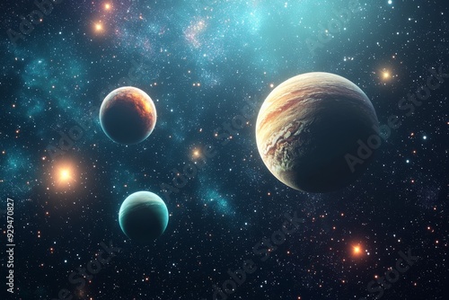 Space cosmic illustration with planets scene created with Generative AI