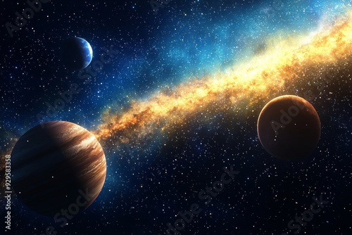 Space cosmic illustration with planets scene created with Generative AI