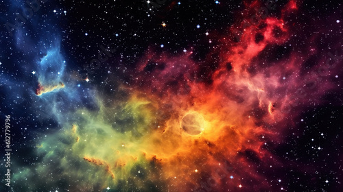 Space nebula with cosmic gas clouds and birth of a star