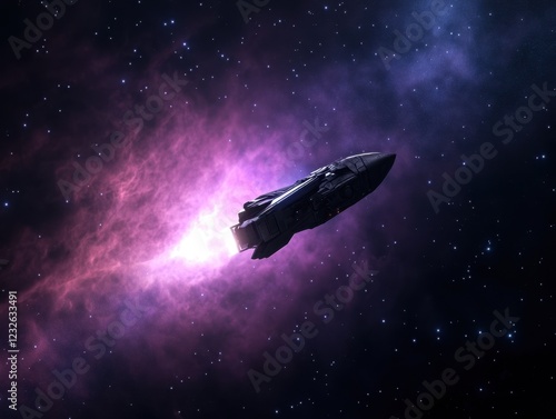 Space Rocket Launching into Colorful Nebula in Deep Universe