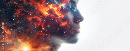 space science human mind, abstract head, brain and face, sky and universe idea, psychological thoughts, isolated on white background