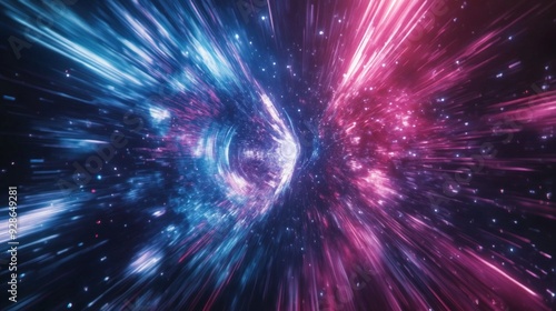 space ship in traveling at light speed, inside the cosmic holographic galactic vortex, space background