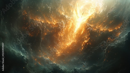 Spaceship Ascending Through Fiery Cosmic Nebula