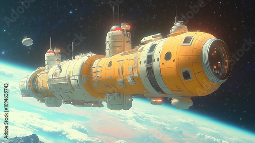 Spaceship orbiting a distant planet showcasing futuristic design and cosmic surroundings. Generative AI