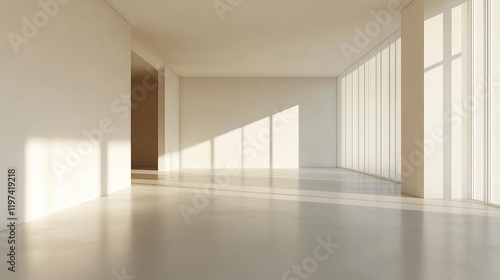 Spacious Minimalist Contemporary Office Interior with Pristine White Walls and Soft Natural Light Creating a Calm and Clean Workspace Atmosphere