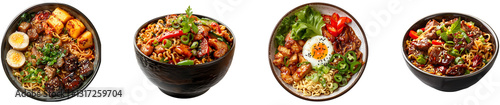 spaghetti in bowl on transparent background collection set