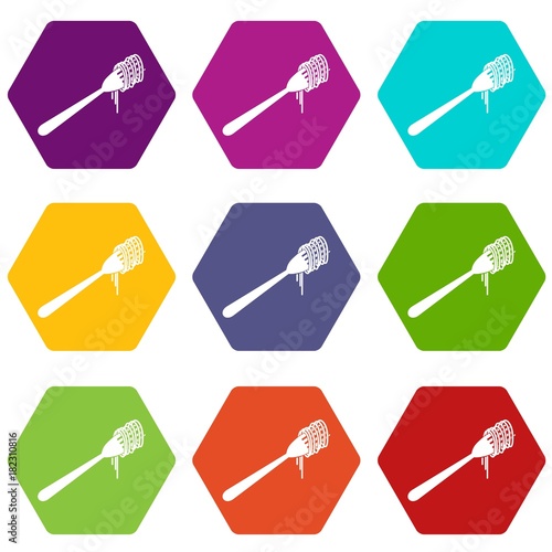 Spaghetti on a fork icon set color hexahedron