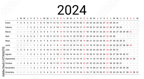 Spanish calendar for 2024 year. Linear planner. Vector illustration.