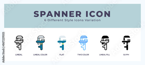 Spanner icon set. outline. glyph black. flat color and filled line color