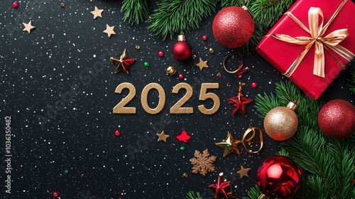 Sparkling "2025" burns brightly on a stylish black scene.