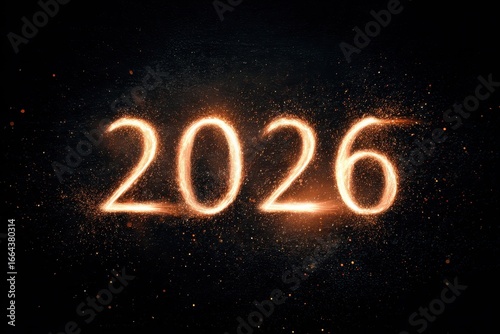 Sparkling 2026 New Year: Golden Numbers on Dark Background with Glitter