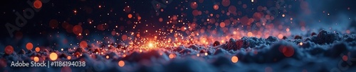 Sparkling dust settles over a monochromatic expanse, sparkles, glowing particles, translucent