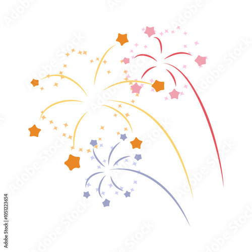 Sparkling firecracker explosion, vector cartoon bursting fireworks with colorful stars and sparks, festive background