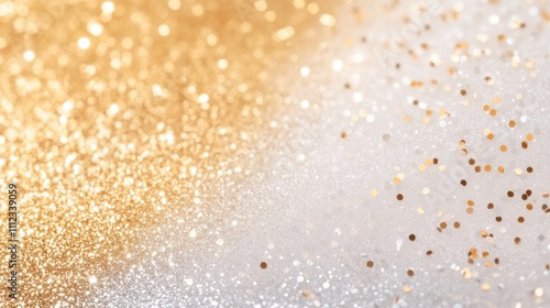 Sparkling glitter background in gold and white tones for festive themes and creativity.