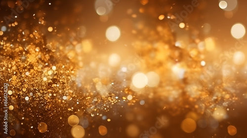 Sparkling Gold Bokeh Background, Festive Glitter, Warm Holiday Glow with Copy Space