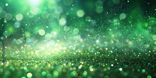 Sparkling green particles suspended in mid-air with a soft focus background and blurred edges, creating a sense of depth and dimensionality, light green, misty atmosphere
