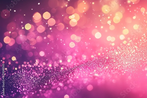 Sparkling pink and purple bokeh background with glitter particles creating a festive and elegant texture
