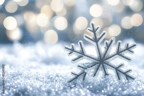 Sparkling Silver Snowflakes on Snow With a Festive Bokeh Background