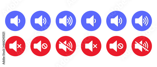 Speaker and mute volume icon vector in flat style. Volume and silent mode sign symbol